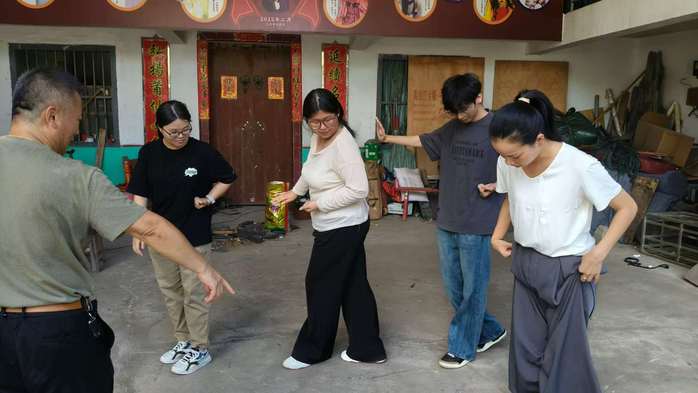 转向莆田荔城,他们走进莆仙戏炳棋剧团,在陈炳棋团长的悉心指导下,沉浸式研习“三步颠”“傀儡介”等经典技法。从动作僵硬到渐入佳境,从陌生疏离到深深着迷,他们在一招一式中触摸到千年古戏的鲜活脉搏,也暗下决心要做非遗传承的青春火种。