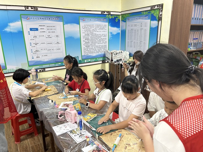 DIY环节中,实践队准备了陶泥、颜料、画笔等材料。在队员的指挥下,小朋友们有序入座,大家结合古厝元素,发挥创意,为冰箱贴勾勒线条、填充色彩:有的复刻了古厝的经典红墙黑瓦,有的在细节处添加了闽南特色的雕花图案,还有的融入了现代审美,让传统与时尚巧妙融合。小朋友们专注的神情、队员们协作的身影,构成了活动现场温馨的画面。
