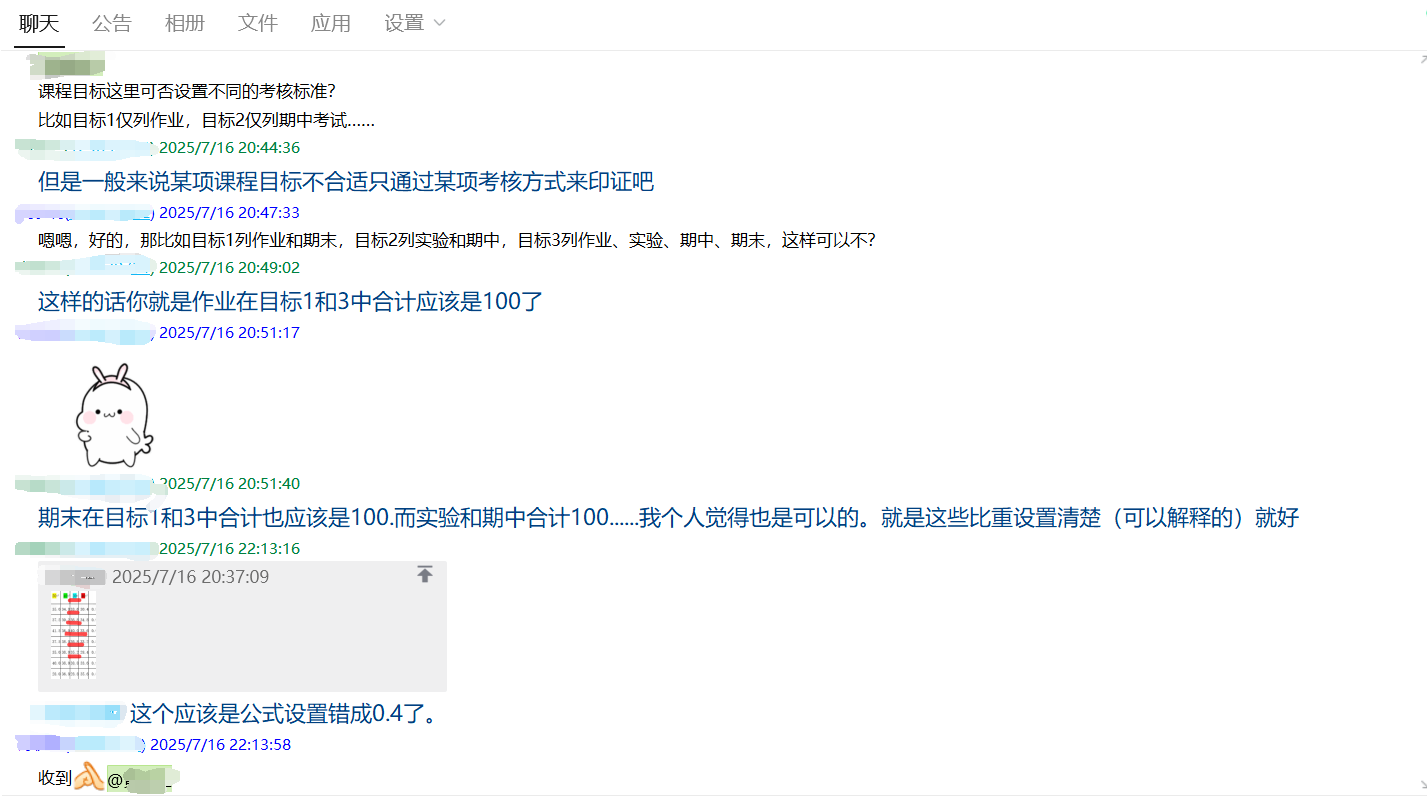 黄淑兰老师先以屏幕共享方式分享了自己撰写上学期第一批课程目标达成度分析报告的一些理解,在线解答了部分老师的相关疑问。屏幕分享结束后专业老师继续在系群里讨论交流相关细节的处理,为高质量完成2024-2025学年第2学期课程目标达成度评价工作奠定了良好的基础。(beat365官方网站 财政学与金融学系/图文 审核:黄淑兰、黄培真)