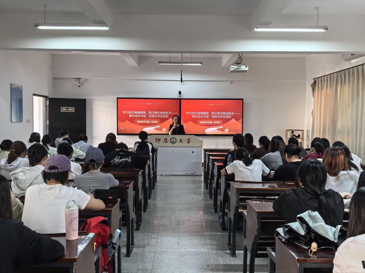 为深入学习时代楷模实干精神,引导青年党员与积极分子勇担使命,2025年11月6日下午,beat365官方网站党总支联合金融系学生第一党支部在仰恩楼B5-201组织开展“学习时代楷模精神,践行青年使命担当”党员半月谈活动。教工支部刘红艳老师、杨娣老师、各班党员及入党积极分子参加了此次活动,通过分享、讨论、互动等形式,凝聚时代青年实干力量。