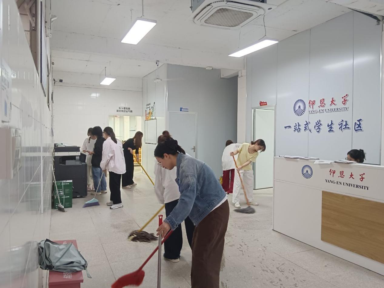 随后,书院清扫活动正式启动。何丽玲老师率先垂范,细致清扫书院积灰严重的角落;党员和积极分子协作配合,携带自备的抹布、扫帚等工具,全面清理书院公共区域的走廊、桌椅、窗台及卫生死角,用实际行动为师生营造出整洁优美的学习生活环境,充分彰显了“我是党员我先行”的担当精神。