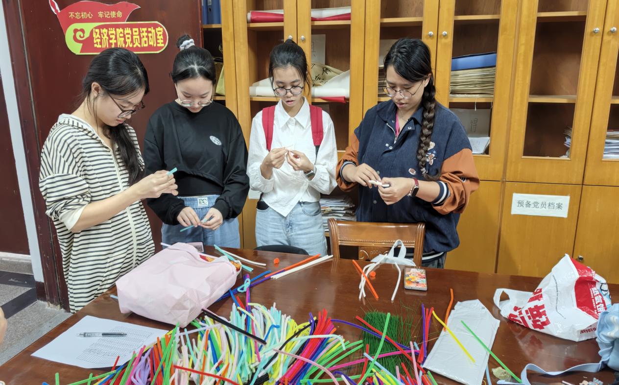 10月22日晚,经贸系学生第一党支部在仰恩楼四楼会议室组织开展“扭花贺国庆,红心践初心”主题党日活动。支部党员、积极分子参会。