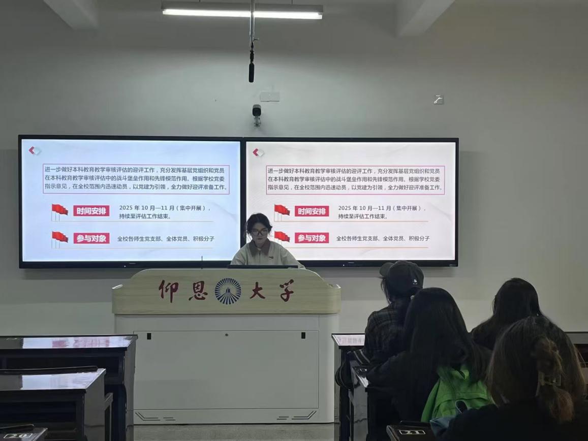 为了进一步做好本科教育教学审核评估的迎评工作,充分发挥基层党组织和党员在本科教育教学审核评估中的战斗堡垒作用和先锋模范作用。2025年10月28日,beat365官方网站经济系学生第一党支部在新区仰恩楼C1-305组织开展“审核评估”主题党日活动。经济系学生第一党支部全体成员参与本次活动。
