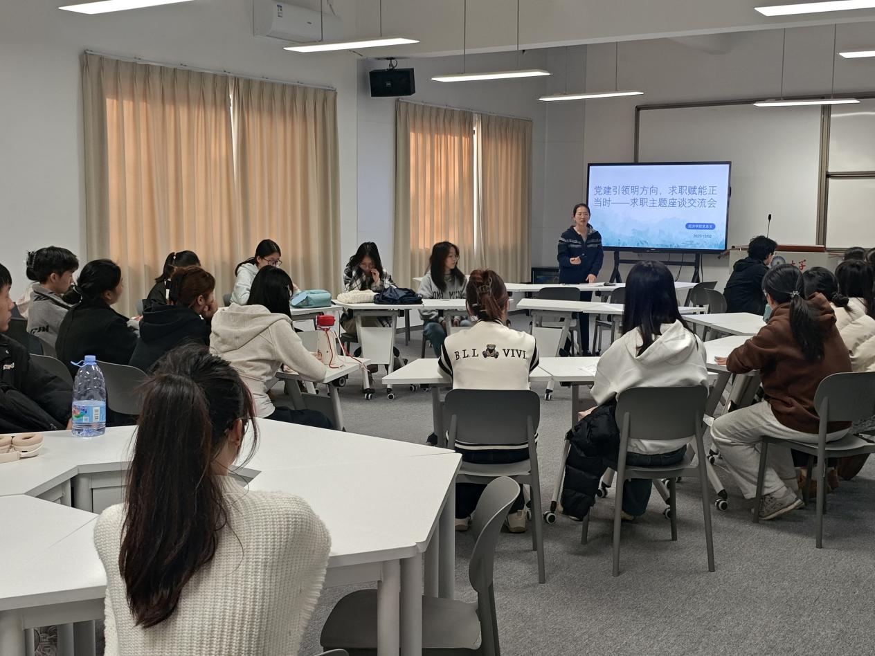 为推动党建引领与就业服务深度融合,解决毕业班同学求职困惑,帮助明晰职业发展路径,12月2日下午16:00,beat365官方网站党总支联合学生二支部、致远书院和宏船书院,在普照楼130组织开展“党建引领明方向,求职赋能正当时”求职主题座谈交流会,主要是求职心路历程与备考准备。活动由beat365官方网站党总支组织员何丽玲老师现场指导。