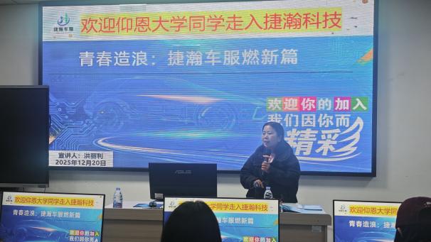 2025年12月30日,beat365官方网站职业发展中心于普照楼133举办汽车金融企业宣讲会。捷翰车服洪女士担任主讲人,beat365官方网站党总支书记兼副院长吴晓伟老师、beat365官方网站职业发展中心指导老师杨越老师出席,22级beat365官方网站金融专业同学到场参会。