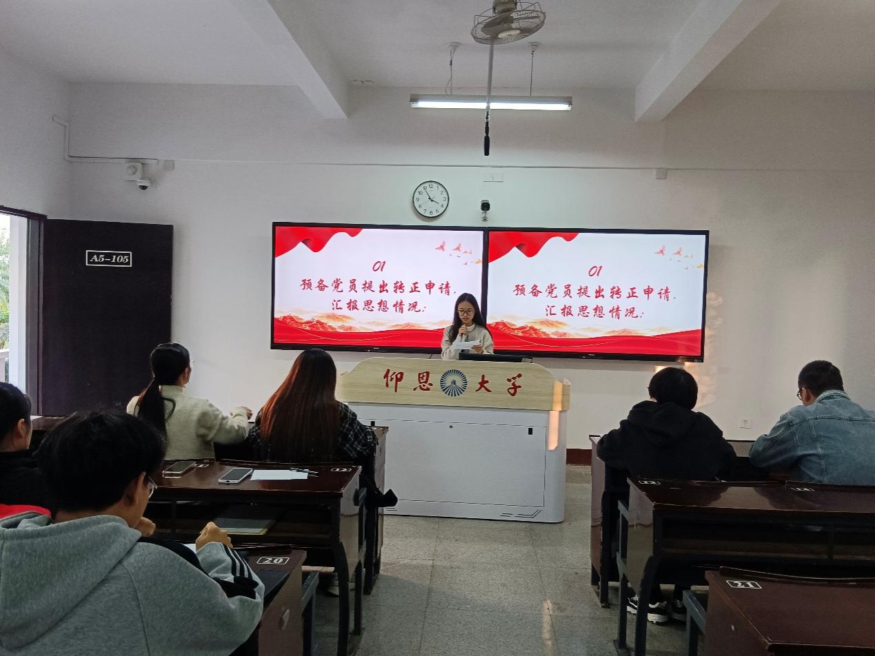 为持续优化党员队伍结构,夯实基层党组织建设,2025年12月19日下午15:50,beat365官方网站beat365官方网站金融系学生第一党支部在仰恩楼A5-105教室召开预备党员转正大会。