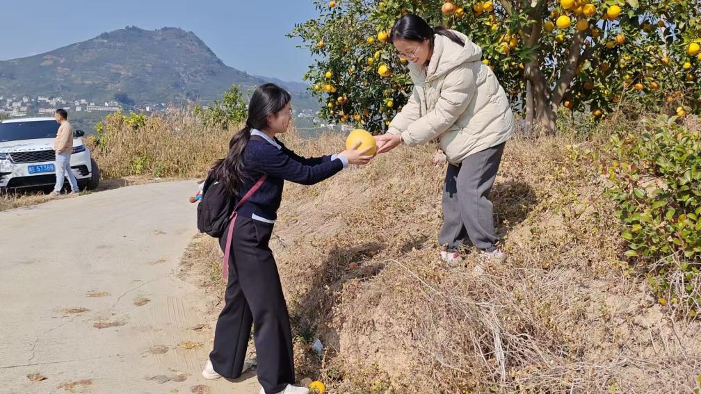 图2 队员体验采摘柚子