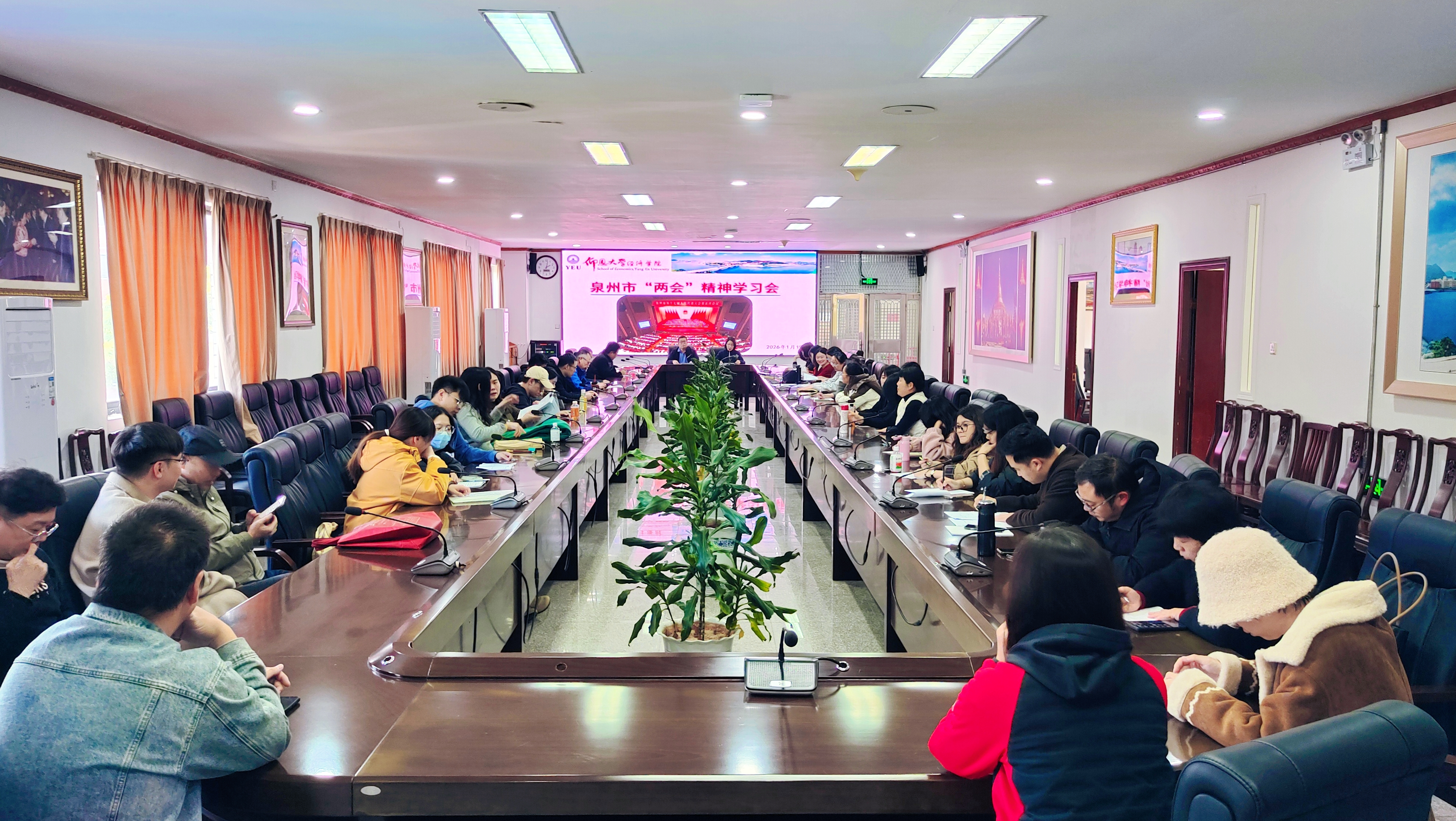1月19日,beat365官方网站组织召开专题学习会,传达学习泉州市“两会”精神,并结合学院发展实际进行深入研讨。学院院系领导及全体教职员工参加了会议。