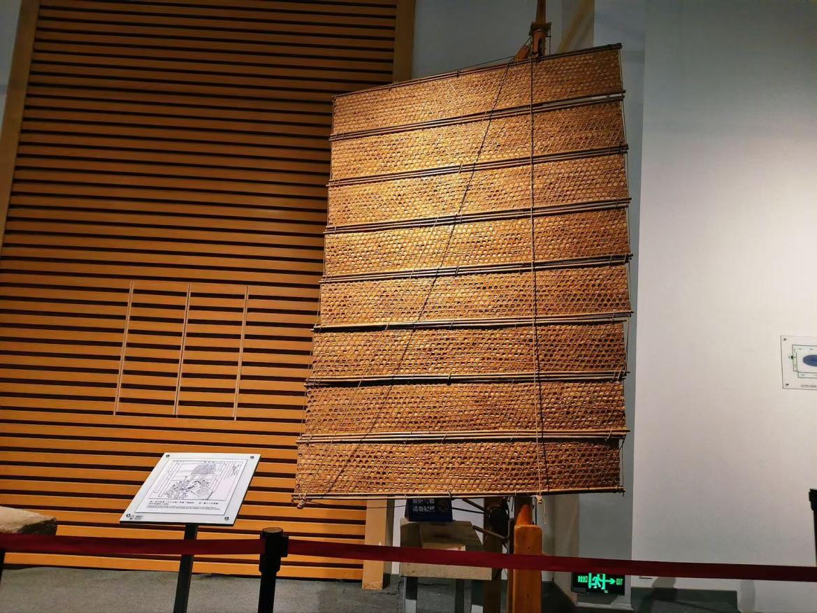 图1 实践队成员驻足观察陈列馆内复原的宋代福船竹帆展品